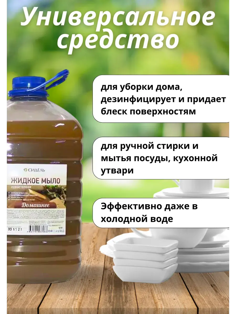Уникальное средство для ежедневной уборки дома и стирки прекрасно удаляет пятна, моет и дезинфицирует, придает блеск любым поверхностям. Моющее средство подходит для ручной стирки, мытья посуды, кухонной утвари, обезжиривания и дезинфекции любых сильно загрязненных поверхностей. Эффективно даже в холодно воде! Средство применяется в быту для мытья посуды, микроволновой печи, плиты, в хозяйстве для стирки одежды и обуви, а так же личной гигиены для мытья рук на кухне и туалетных комнатах. Улучшенная формула хозяйственного мыла - не портится при попадании излишнего количества воды. Используется для ручной и машинной стирки белья, не сушит кожу благодаря натуральной основе.