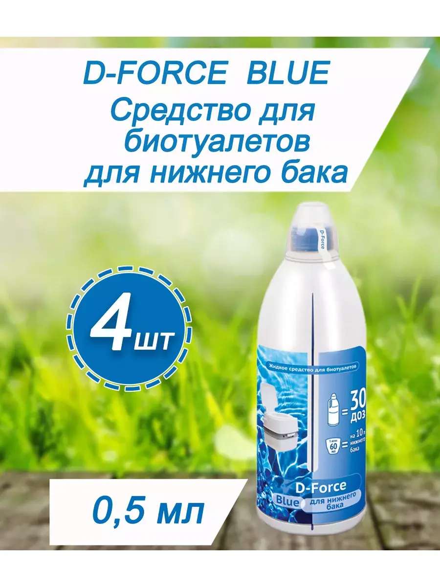 Жидкое средство для биотуалетов D-Force Blue 0,5л.- 8 доз. Жидкость для биотуалета нижний бачок состоит из биологически разлагаемых компонентов, что делает средство безопасным как для человека, так и для окружающей среды. Концентрат заливается с небольшим количеством воды в накопительный бак биотуалета. Состав для накопительного бака предотвращает газообразование, развитие гнилостных процессов, нейтрализует неприятные запахи, обладает дезодорирующим эффектом. Благодаря эффективному растворению твердых отходов, внутренние стенки бака остаются чистыми. При использовании экологически чистой жидкости D-Force Blue для нижнего бака совместно с биотуалетом образующиеся отходы можно выливать на землю без опасности нанести вред себе или окружающей среде. Выгодно: жидкость для туалета нижний бак - концентрированное средство с экономичным расходом. Преимущества: Не токсично. Не раздражает кожу. Средство для биотуалета от запаха нейтрализует неприятные запахи. Средство для биотуалета в нижний бак обладает мощным дезодорирующим эффектом. Бережно относится к емкостям для биотуалета жидкость не вызывает коррозии и старения пластмасс, металлов, резины, очищает внутренние стенки бака. Разлагает твердые отходы и бумагу. Предотвращает газообразование. Средство для туалета репятствует размножению бактерий. Прост в утилизации — через канализацию или в предназначенных для этого местах. Сохраняет в чистоте сточный бак. Рекомендуется использовать с D-Force Pink для верхнего бака, средства совметно работают как жидкость для биотуалета набор для верхнего и нижнего баков. Подходит в биотуалет для дома и биотуалет для дачи. Состав: вода, неионогенные ПАВ, смачиватели, красители, азотсодержащие соединения, отдушка. Срок годности: 3 года.