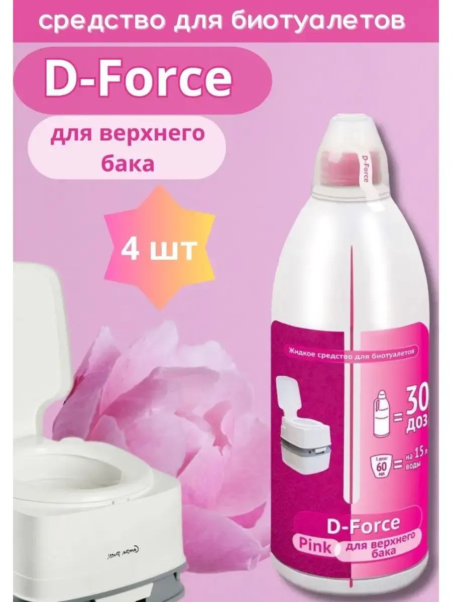 Жидкое средство для биотуалетов D-Force Pink 1,8л ароматизирующее средство D-Force Pink комфорт устраняет неприятные запахи и облегчает смыв в биотуалете. Жидкость для ухода за верхним баком биотуалета. Жжидкость для биотуалета сохраняет воду в баке свежей и нейтрализует неприятные запахи, оставляет приятный аромат лаванды после каждого смыва. Благодаря особой формуле жидкость образует на туалетной чаше защитную пленку, которая облегчает смыв, предотвращает появление темных пятен и дезинфицирует поверхность туалета. Ароматическая композиция — лаванда. Преимущества: Облегчает смыв. Состав жидкости для биотуалета нейтрализует неприятный запах, дезодорирует. Примение средства для верхнего бака предотвращает появление темных пятен на поверхности унитаза. Средство для биотуалета очищает и дезинфицирует туалетные поверхности. Для биотуалета жидкость предотвращает газообразование. Предотвращает «цветение» воды и сокращает расход воды при смыве. Средство экологически безопасно, не содержит токсических веществ. Как жидкость для биотуалета набор рекомендуется использовать жидкость для биотуалета нижний бачок с D-Force Blue или Green. Применение: добавьте в верхний бак биотуалета жидкость из расчета 60 мл средства D-Force Pink для верхнего бака на 15 литров воды. Затем добавьте в бак воду. Состав: вода ПАВ стабилизатор рН отдушка краситель. Срок годности: 3 года.Жидкость для верхнего бака биотуалета, дезодорирующее средство для биотуалета от запаха и против цветения воды, разложения и устранения отходов, растворения туалетной бумаги и жира. Используется в био туалет для дома и био туалет для дачи. Экологически чистое дезинфицирующее средство для ухода за биотуалетом и нейтрализации запахов.