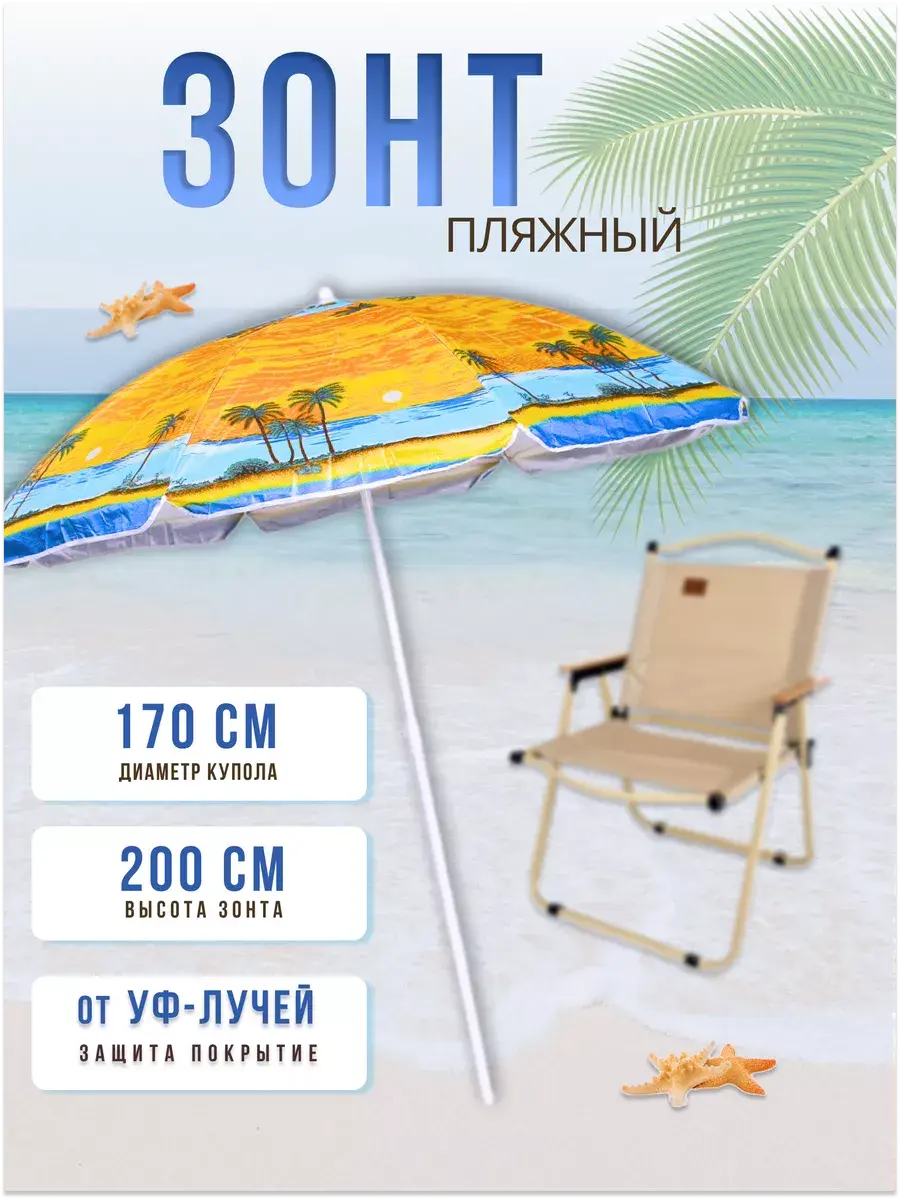 ЦВЕТ МОЖЕТ ОТЛИЧАТЬСЯ!!!!!Пляжный складной зонт с диаметром 170 см - идеальный компаньон для отдыха на пляже или пикника на природе. Благодаря своей портативности и удобству в использовании, он быстро станет вашим незаменимым спутником под открытым небом.
